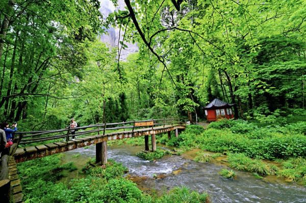 到袁家界,可以游览天籁之音的漂流河、日月洞、红石林、双桥潭,体验四季美景,看到每个自然景色的美丽和神奇。