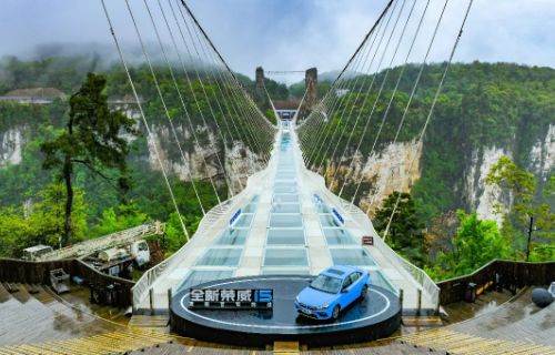 5、张家界天门山玻璃栈道:张家界天门山玻璃栈道由玻璃组建而成,悬于峭壁之上,恍如凭空伸出一般。当走在玻璃栈道上,能无死角观看到天门山上不一样的远处风景,站在玻璃上向脚下看去,能给人带来刺激和震撼感,并且透过玻璃看到绝壁间的美丽风景。
