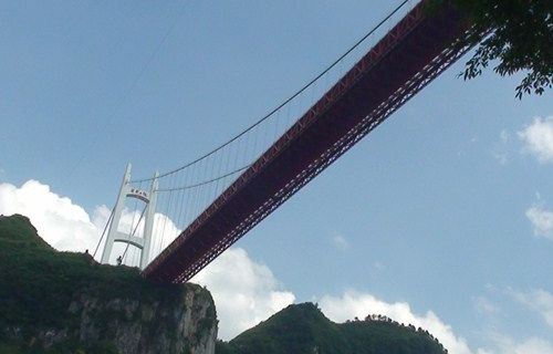“天下第一桥”是一天然石桥,位于张家界袁家界景区,处砂刀沟风景区一带,属张家界精华景点。大自然的鬼斧神工,将一块厚约4米的天然石板,横空“架”在两座山峰之上,把东西两峰连接。