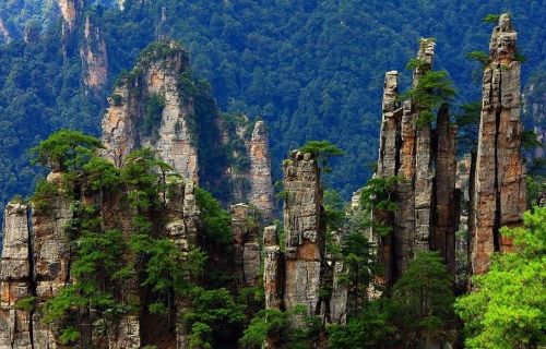 中国张家界拥有世界知名的自然遗产,包括张家界国家森林公园、天门山、武陵源三大景区。这些景区以荒山峻岭、绝壁陡崖,泉水飞瀑、花木葱茏为特色。