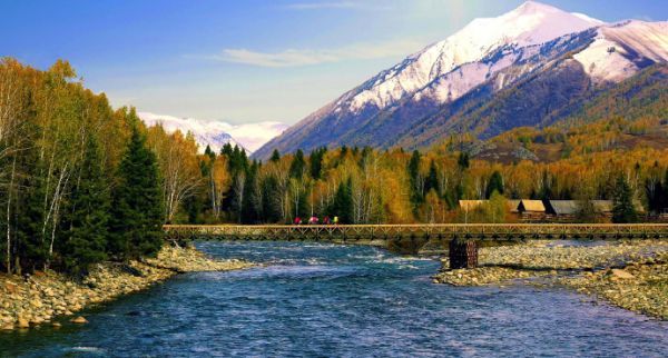 --是拍摄禾木河的最佳位置,站在桥上,可一览两边禾木村和白桦林美景。