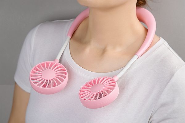 4、挂脖风扇:无需手持,清风自来,只要将其挂在脖子上,脸部、脖子、耳后、后脑勺等部位都能360度地感受清凉。