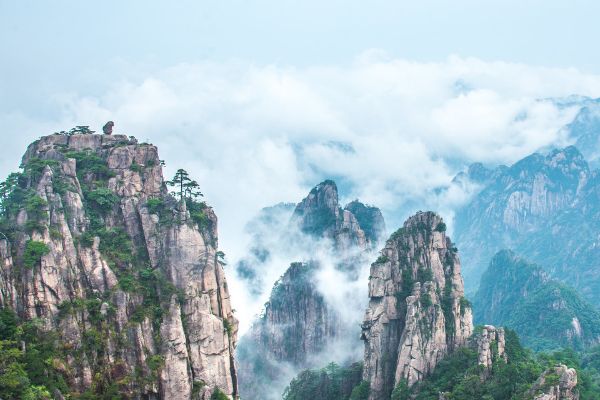 黄山有72峰,主峰莲花峰海拔1864米,与光明顶、天都峰并称三大黄山主峰,为36大峰之一。黄山是安徽旅游的标志,是国家5A级旅游景区,是中国十大风景名胜唯一的山岳风光。著名景点有迎客松、莲花峰、光明顶、天都峰、飞来石、西海大峡谷等。