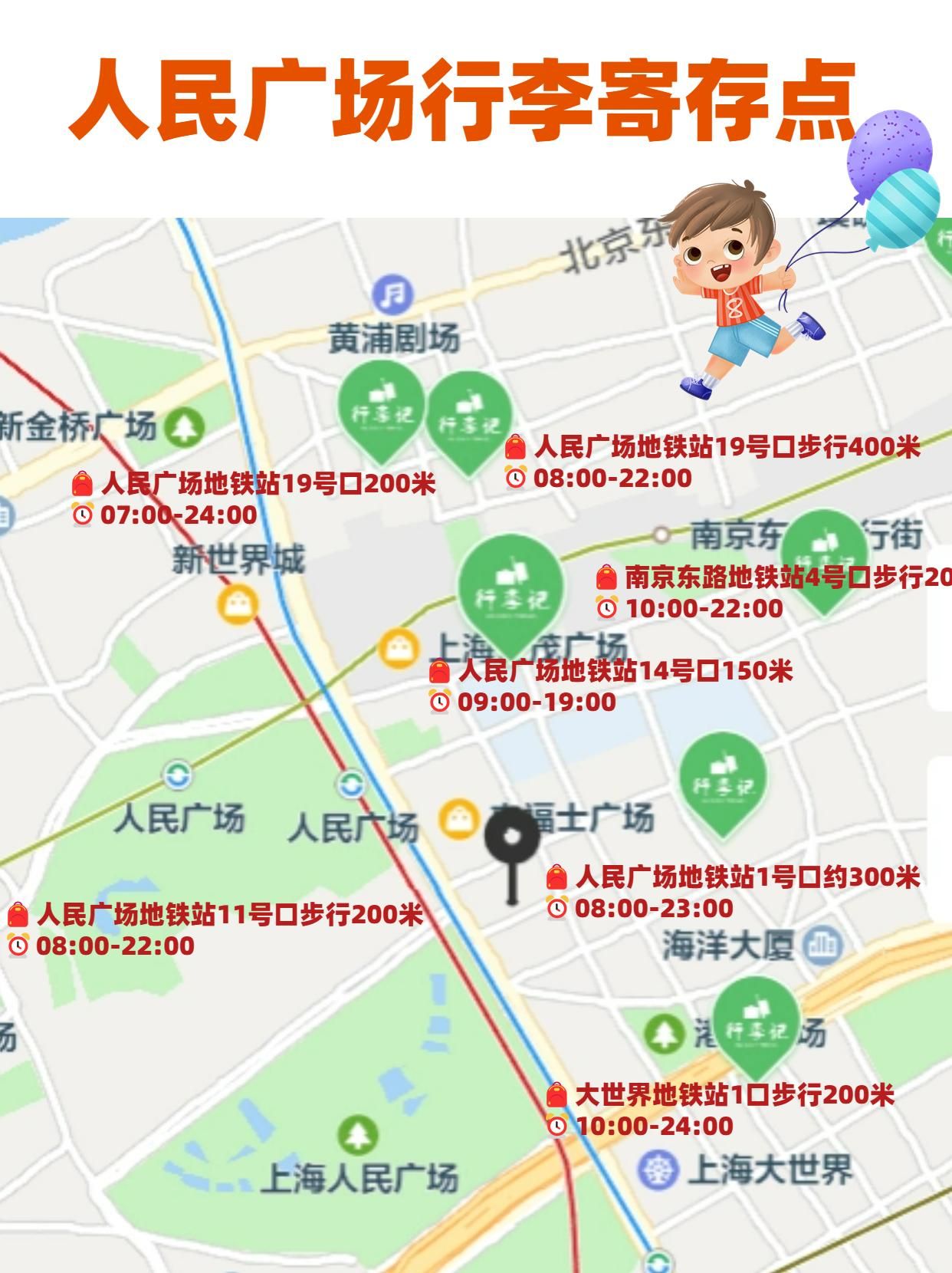 行李寄存:行李携带不方便可以寄存在人民广场附近,【行李记】有5个寄存点!