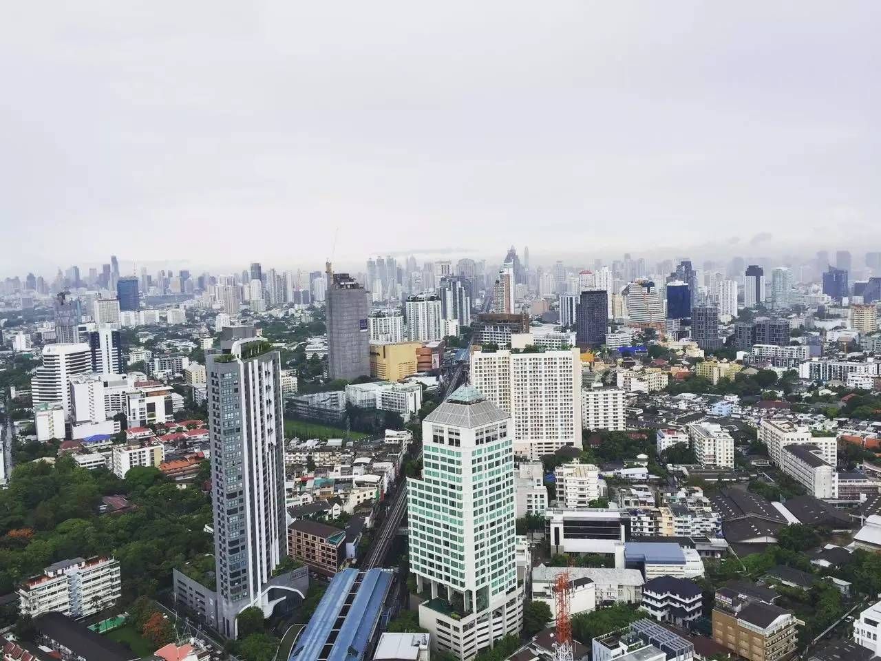 从46层天台看向曼谷的富人区,把画面一分为二的马路是素坤逸路,据说这条路沿线房价升值潜力最大。