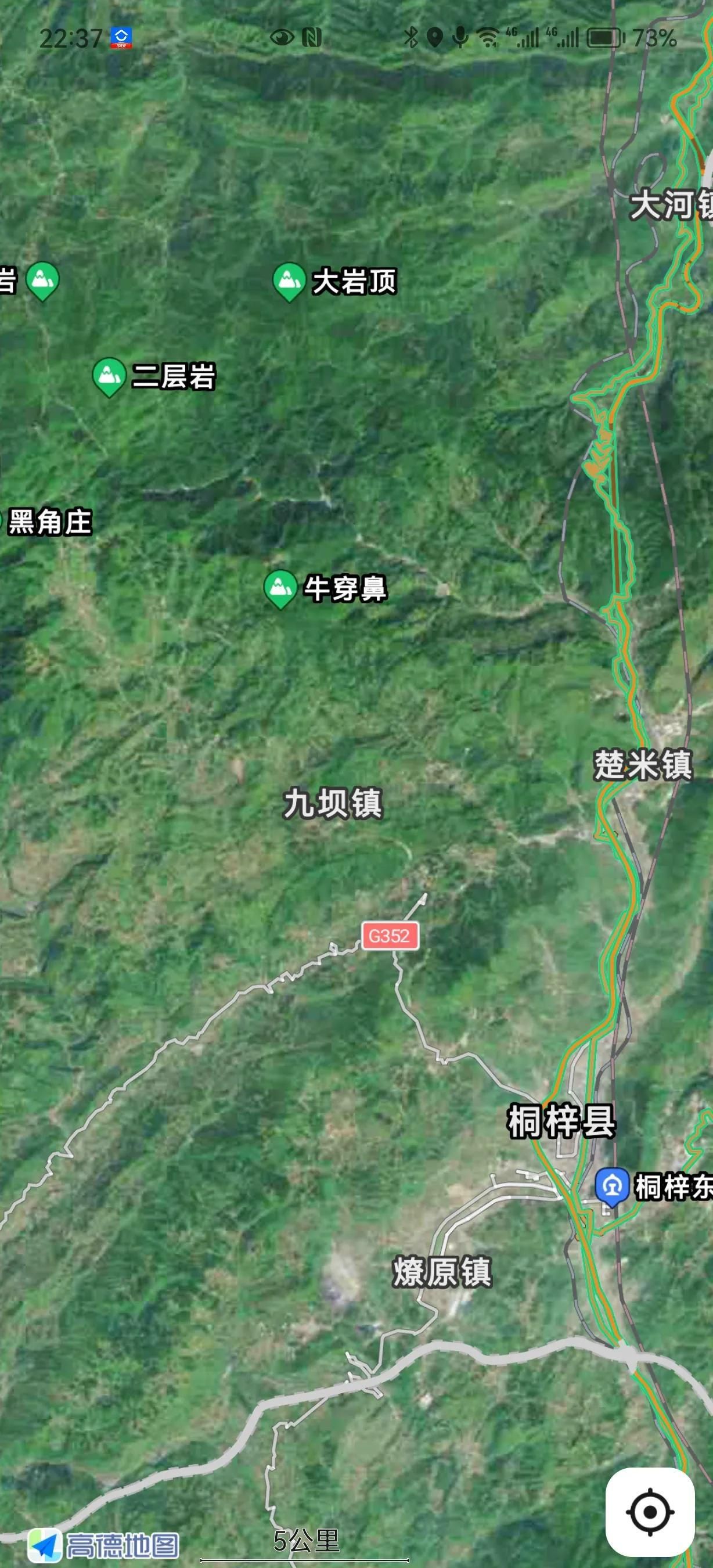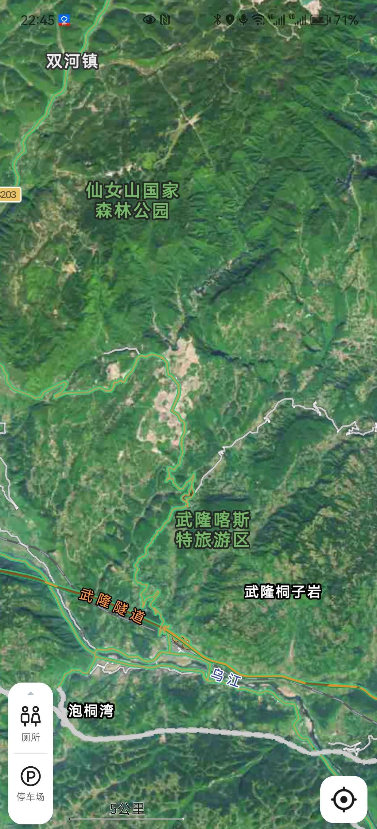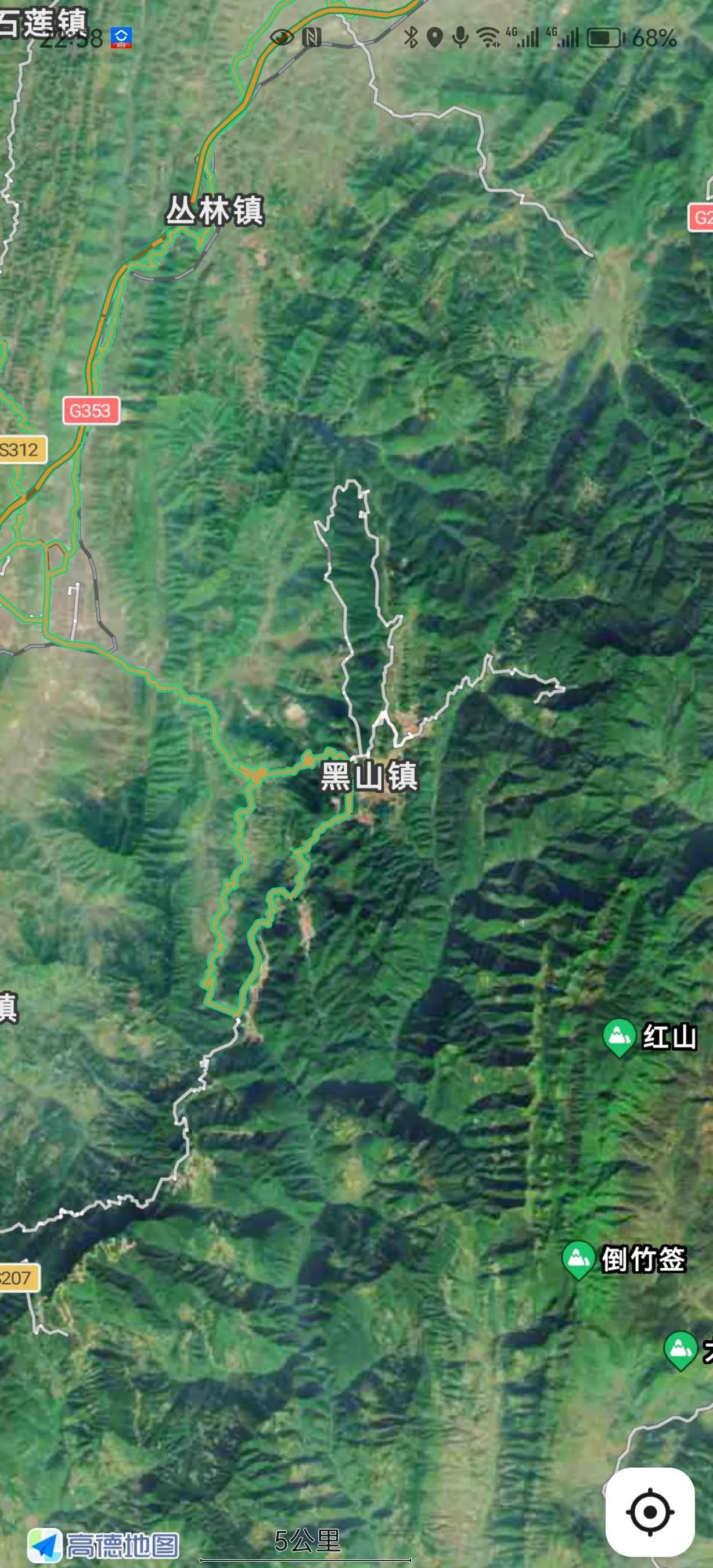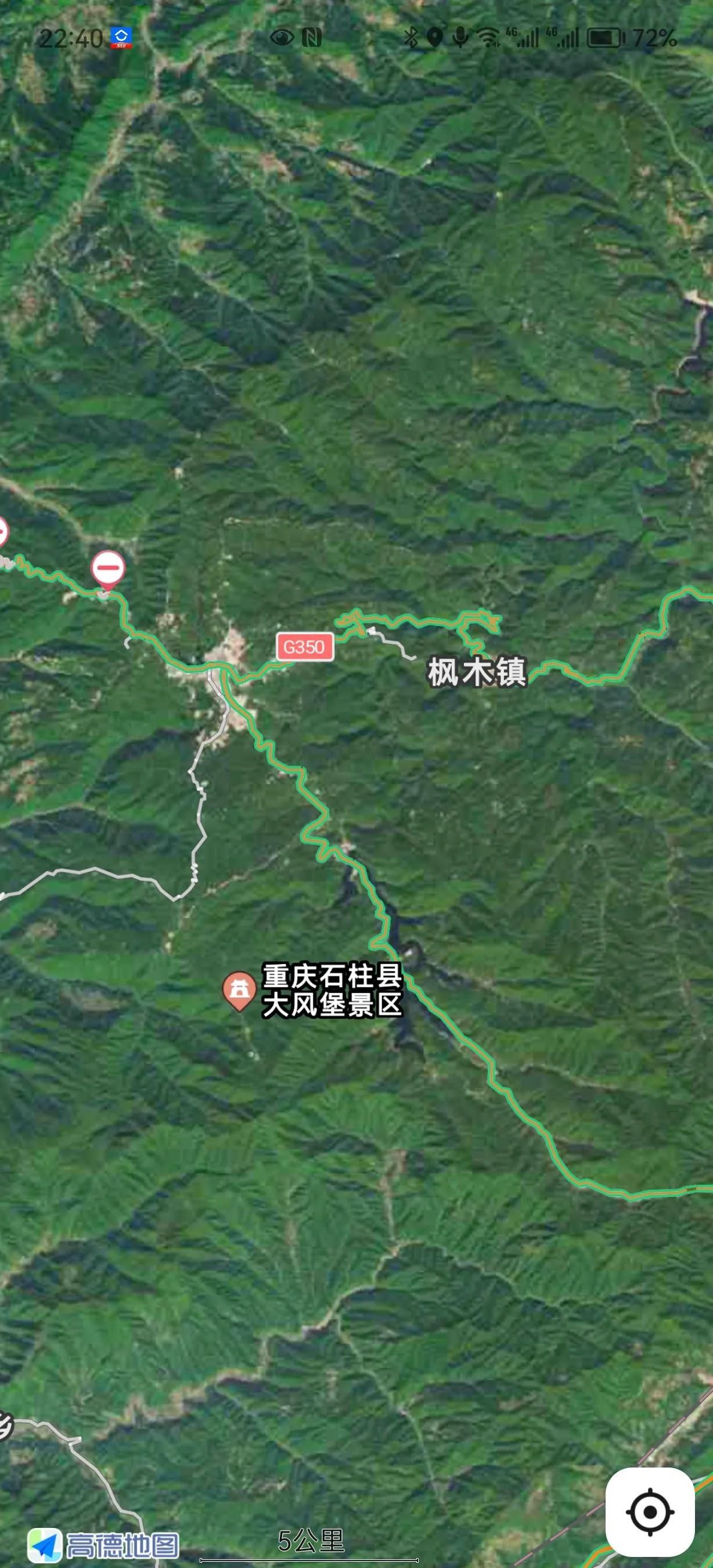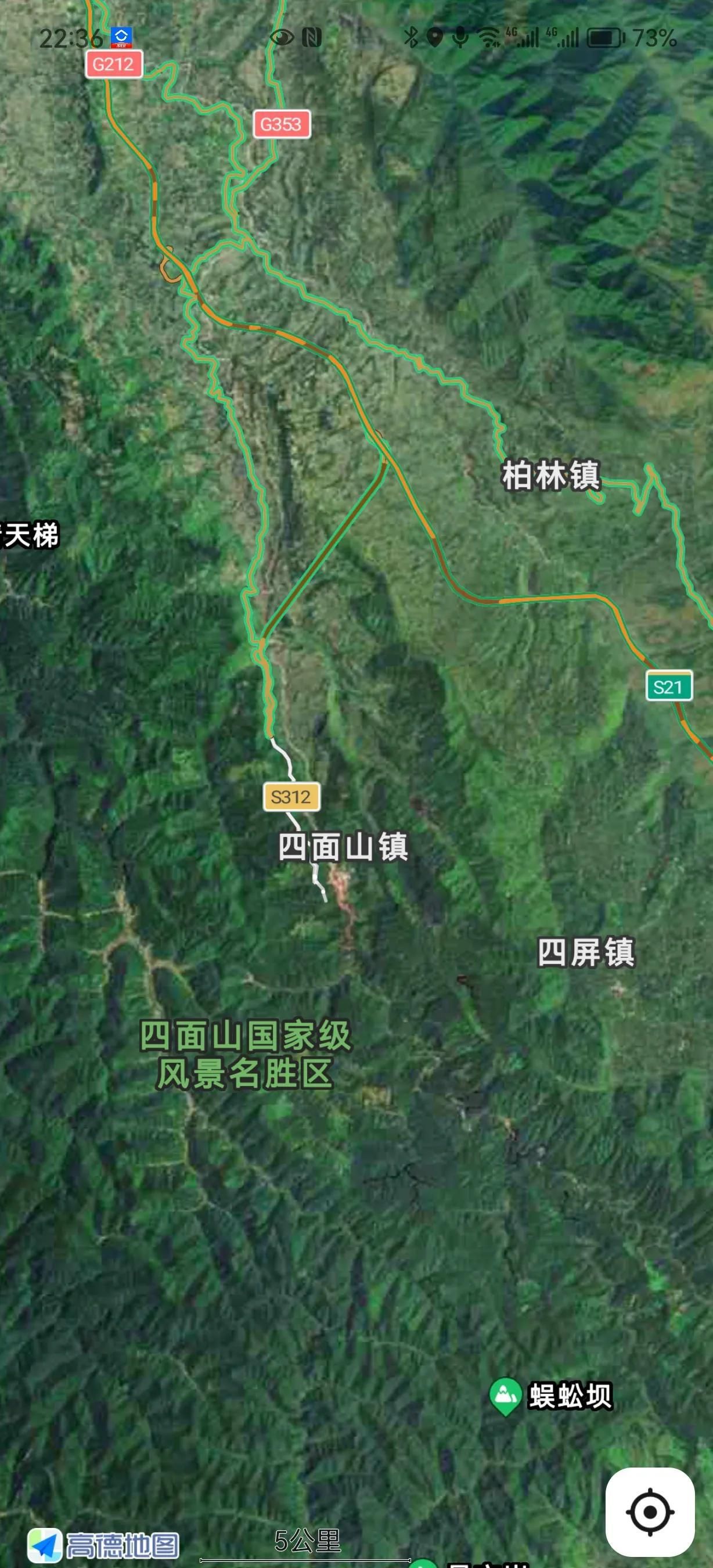 下面,作者特地从高德卫星地图上,全部按照相同比例尺(1∶50万,即图上1厘米相当于5公里),对重庆周边的避暑旅游目的地进行截图,让大家了解这些地方森林植被及水源条件的一个概况,马上上图(排名不分先后):