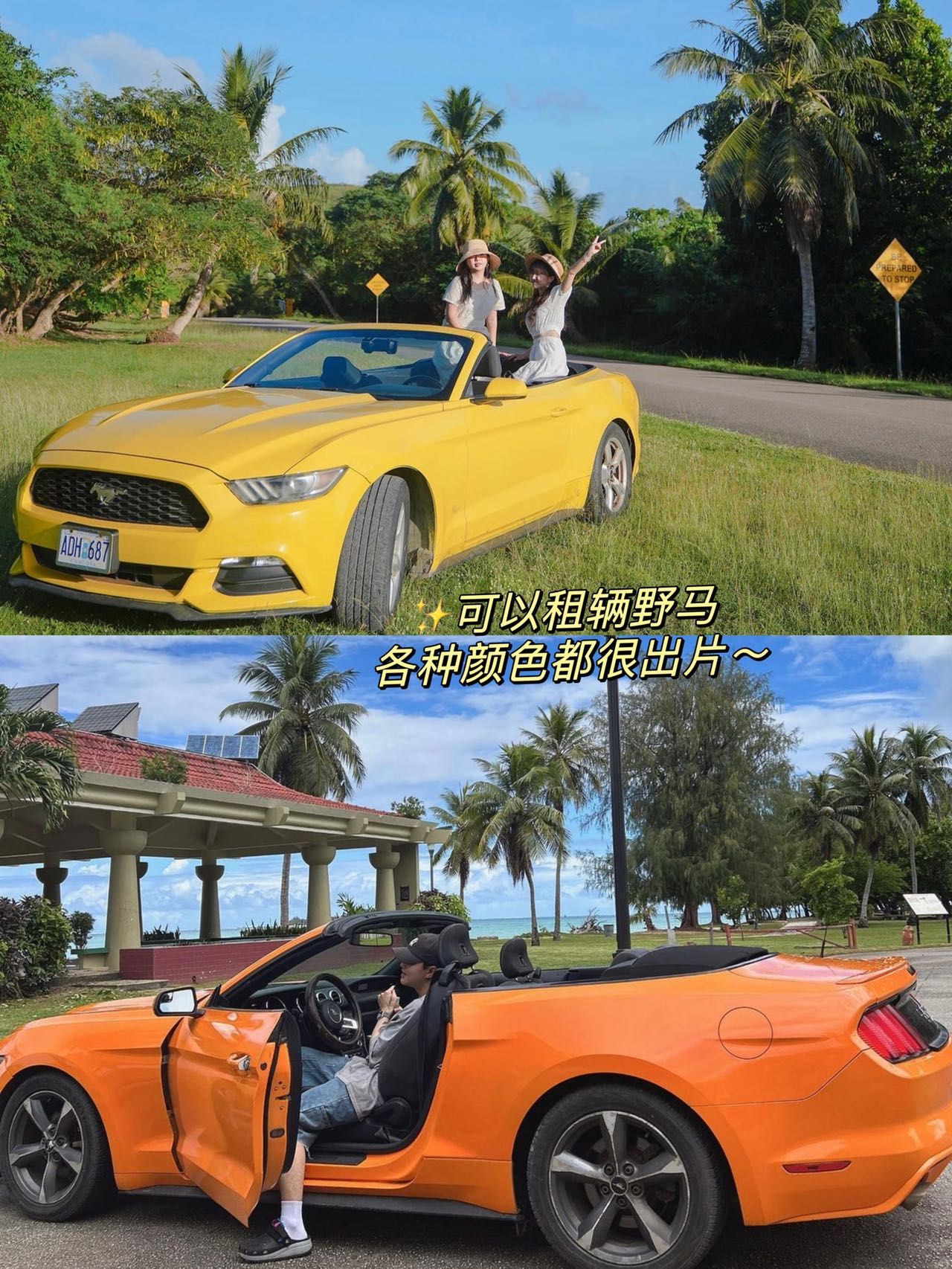 ⭐Day上午高空跳伞或体验开飞机(高空俯瞰塞班)也可以可以租一辆跑车自己开车自己玩,我租了一辆粉色的野马,拍照超级出片。