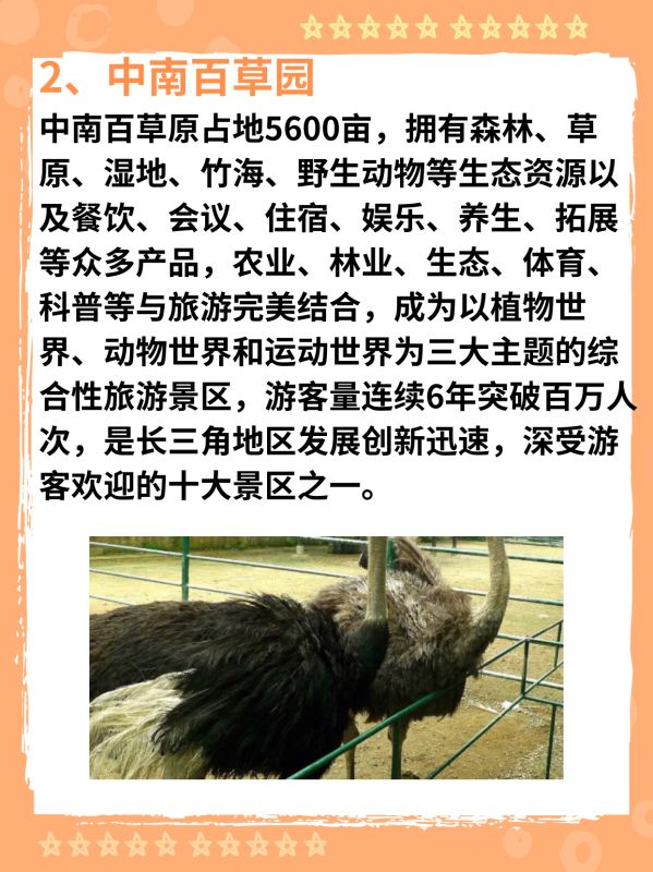 2、中南百草原占地5600亩,拥有森林、草原、湿地、竹海、野生动物等生态资源以及餐饮、会议、住宿、娱乐、养生、拓展等众多产品,农业、林业、生态、体育、科普等与旅游完美结合。