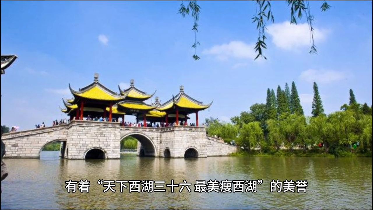 ·2.扬州瘦西湖:瘦西湖位于扬州市,是一个美丽的湖泊景区,有着"天下西湖三十六,最美瘦西湖"的美誉。
