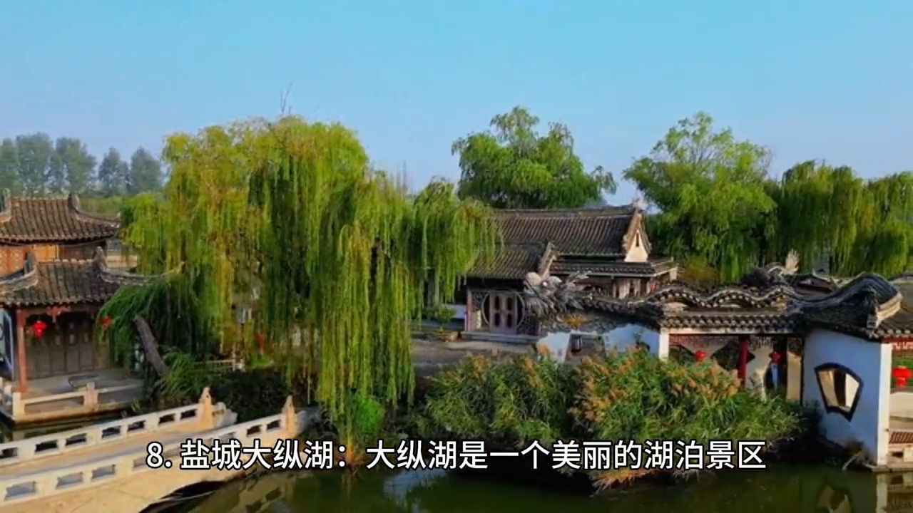 ·8.盐城大纵湖:大纵湖是一个美丽的湖泊景区,有着广阔的水面和丰富的水生生物资源。