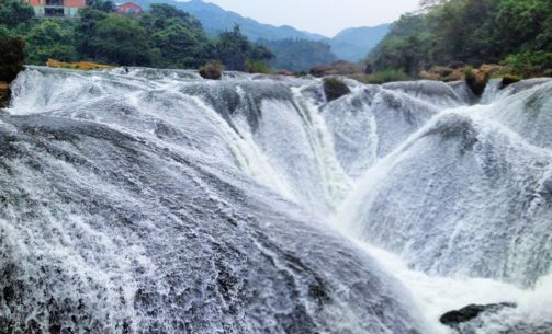 陡坡塘瀑布是黄果树瀑布群中瀑顶最宽的瀑布,在黄果树瀑布上游1公里。这里曾是86版《西游记》的主题曲师徒四人牵马过河的取景处,因此而闻名;陡坡塘平水时,水流缓慢而清澈,但如遇上洪水,就能听到瀑布发出低沉浑厚的吼叫声,这也是它“吼瀑”的由来;这里距离大瀑布景区约6KM,整个景区并不大,观看瀑布半个小时足够了;