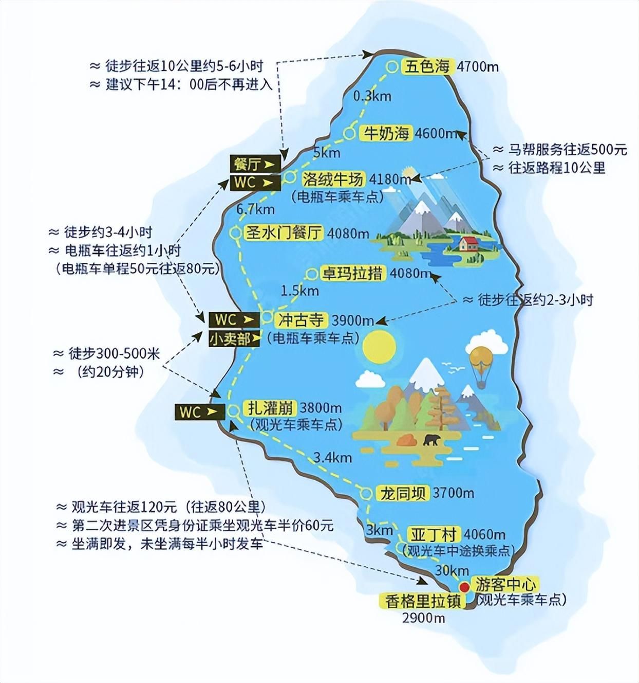 缺点:自由行需搭车往返景区门口;二进亚丁需补80元观光车票。