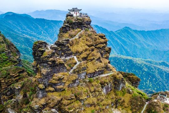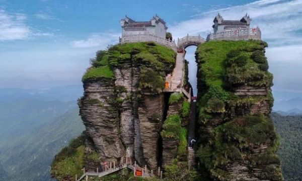 梵净山,为贵州第一名山,矗立在狭窄山脊之上的金顶,高达数百米,因风化出一道狭缝,一分为二,中间有拱桥连接,独特的造型,被誉为现实版的天空之城。走进梵净山,感受原始森林的静谧,群山苍翠连绵,在云雾之中,有种空灵的美。