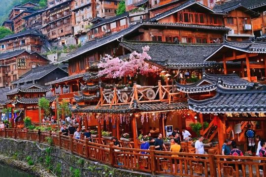 西江千户苗寨是目前最大的苗寨聚居地,是苗族文化的活化石。苗寨依山傍水而建,吊脚楼层层叠叠,还有远近闻名的银匠村,苗族银饰制作具有极高水平。