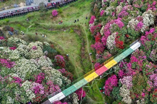贵州毕节的百里杜鹃风景区有地球彩带和世界花园的美称,是国家的五星级景区,也是国家级的森林公园,是贵州省的十大魅力旅游景区之一。这个地方不仅有着漫山遍野的杜鹃花,而且还有很多的参天古树和山水灵动,也有很多的奇珍鸟兽在此栖息,还有非常浓厚的民族风情和原始森林的感觉,在这个公园内有杜鹃湖和百里杜鹃大草原景点,有40多个春天的时候能够赏花,夏天的时候还能够在这里避暑。