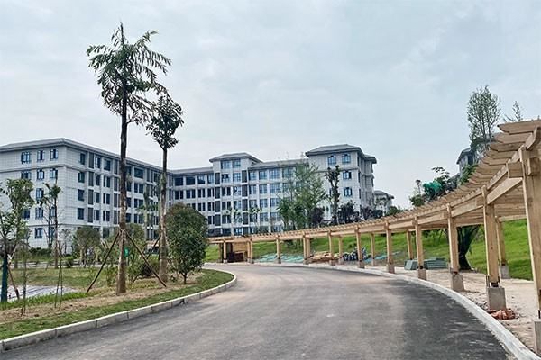 学院占地规划750亩,分三期建设。一期273亩,已建成近13万平方米,含教学楼、实训中心、综合楼、图书馆、学生公寓、食堂、运动场、体育馆、会议中心;二期143亩,2022年7月建成并投入使用,总容纳人数13000人左右。