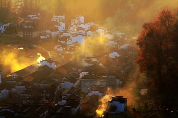 婺源除了春天油菜花的美,其秋色也迷人;特别是位于婺源西北部古坦乡的石城村,这里有百余棵30多米高的种植年代久远的枫树,每到秋季一片火红,与当地的白墙灰瓦的徽派建筑形成美妙的画卷。