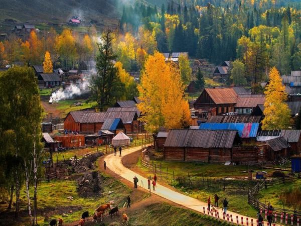 新疆阿勒泰地区哈巴河县铁热克提乡境内的白哈巴村有着西北第一村之称,被誉为中国最美的八个小镇之一,图瓦人独特的民族服饰、宗教崇拜及风俗习惯也受到更多人的青睐。11月的山村是五彩的红、黄、绿、褐色,层林尽染,加上映衬阿勒泰山的皑皑雪峰,犹如一幅完美的油画。