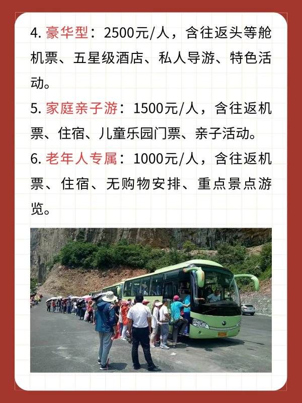 4.豪华型:2500元/人,含往返头等舱机票等。