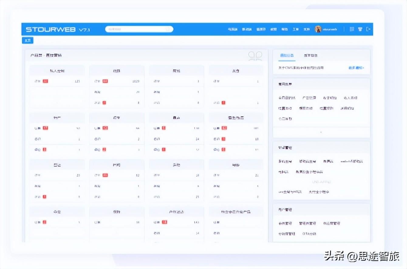 思途旅游电商平台,由几大系统组成,分别是:综合平台管理系统、供应商入驻的商家系统、多端合一的游客体验与预订系统、同业渠道采销系统。