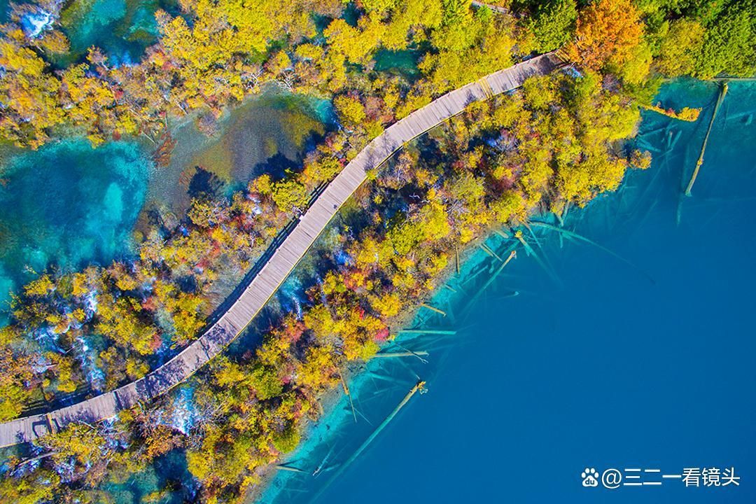 秋天的九赛沟,五彩斑斓的瑶池玉盆、犹如白练的叠瀑、斑澜的彩林、圣洁的雪峰、藏情、纯净的蓝冰山水六绝构成了童话世界。