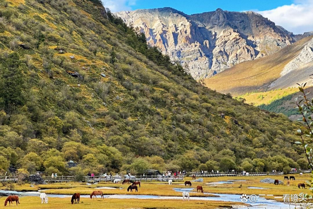 稻城亚丁是四川最美赏秋胜地之一,被《中国国家地理》评选为“中国十大最美秋色”。这里壮观的海子山、圣洁的珍珠海、俄初山红如火焰的叶、古老宏伟的贡嘎郎吉岭寺……都是不可错过的景色。