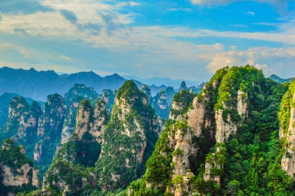 下午,我们便到了天子山。这里就是阿凡达的拍摄地了,我们乘坐索道来到天子山山顶,远远望去,有好多山在云雾中。它们是那么多,一座挨着一座,千姿百态:有的像大楼、有的像城堡、有的像利剑、还有的像提着篮子的少女在散花……每一座山峰,就像一幅美丽的图画。下山,我和爸爸一起走下去的,一共下了6000个台阶,上了3000个台阶,好累呀!但是我们坚持下来啦!旁边的游人都夸我,我感到非常自豪。