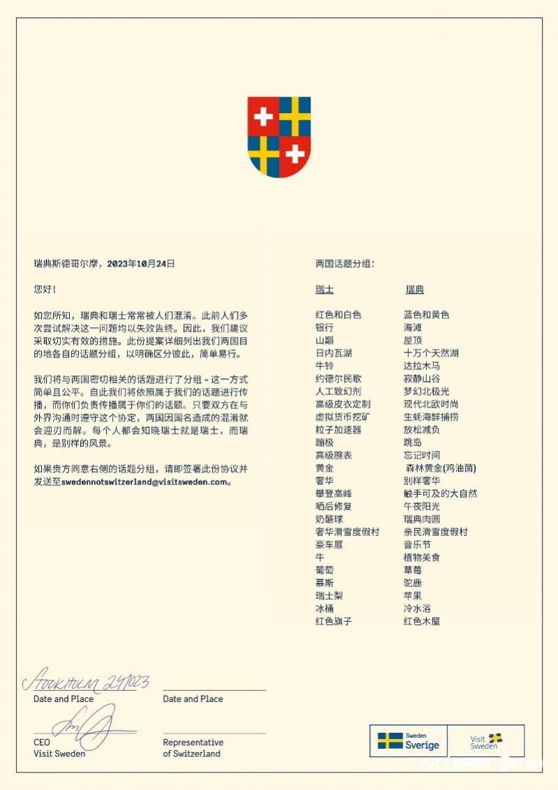 据不完全统计,每年谷歌上“瑞典和瑞士有什么区别”的搜索高达12万次!显然,这样的困扰不只在中国,即便是同在欧洲大陆的一些近邻,或是更远一点的北美也闹出过误把瑞典当瑞士的乌龙事件。为了彻底终结这一长期以来的困扰,瑞典国家旅游局终于决定出手了!10月24日,瑞典向它的同姓但不同宗的“好兄弟”—— 瑞士,正式递交一份提案,明确了25项话题分组,希望能以这种戏谑但不失“严谨”的方式帮助人们了解两国的不同之处,避免两国产生更多因名称相近引发的误会。