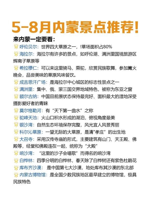 注意21:内蒙古地域辽阔,景点与景点之间的距离较远乘车时间较长且不方便,(建议提前找个当团)省事省钱又安全