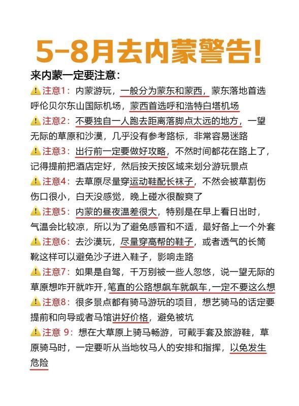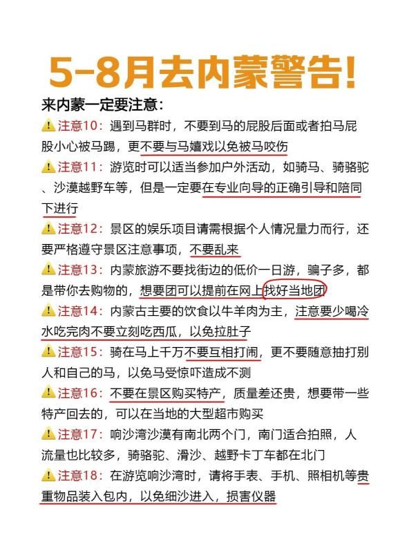 注意9:内蒙旅游不要找街边的一日游,骗子多,想要团可以提前在网上找好本地团