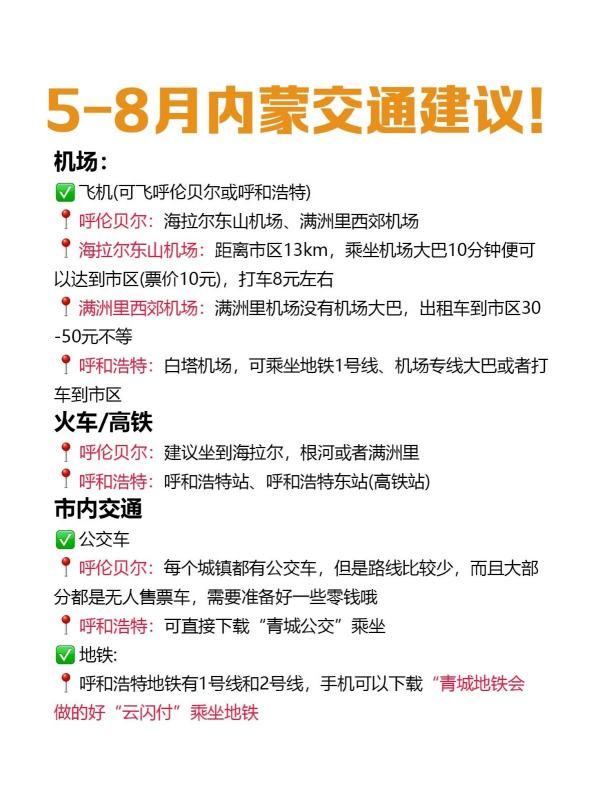 ▲注意1:内蒙游玩,一般分为蒙东和蒙西,蒙东落地首选呼伦贝尔东山国际机场,蒙西首选呼和浩特白塔机场