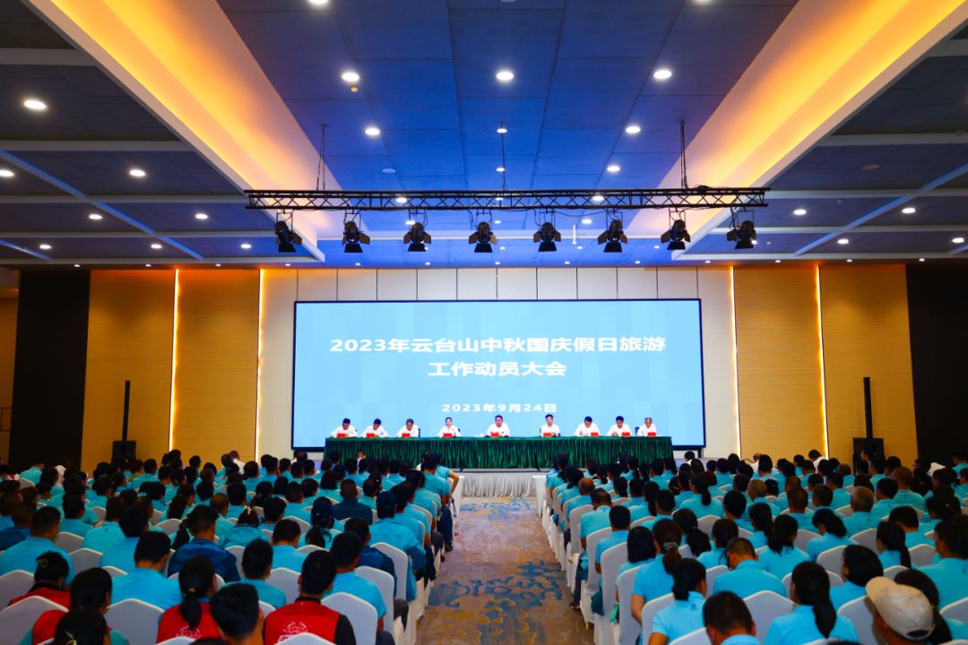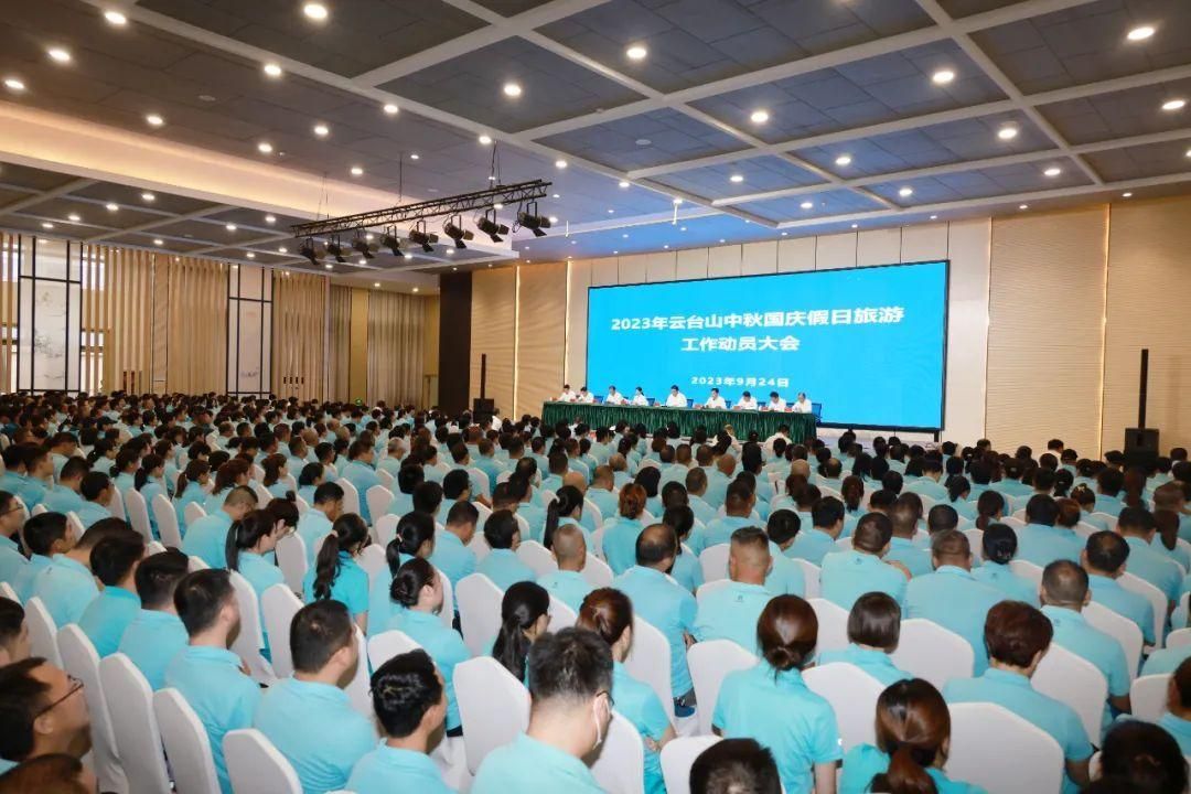 精心筹备周密部署,全力以赴保障出游!中秋国庆双节前夕,云台山举行“2023年云台山中秋国庆假日旅游工作动员大会”,全体2000名干部职工参加会议。动员大会在庄严的国歌声中拉开帷幕,云台山人全体起立齐唱国歌!会上统筹安排、全面部署假日期间各项旅游接待工作,就安全保障、服务质量、游客体验、主题活动等方面进一步明确责任,落实分工,确保为广大游客营造安全有序、欢乐祥和的旅游环境。