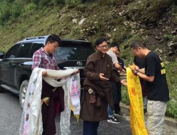 8、敬献哈达有讲究,向长辈或者上级献哈达,一般献在桌上或者交由代理人转交;献给平级,双手交到对方的双手上;向下级则可直接挂在其脖子上。