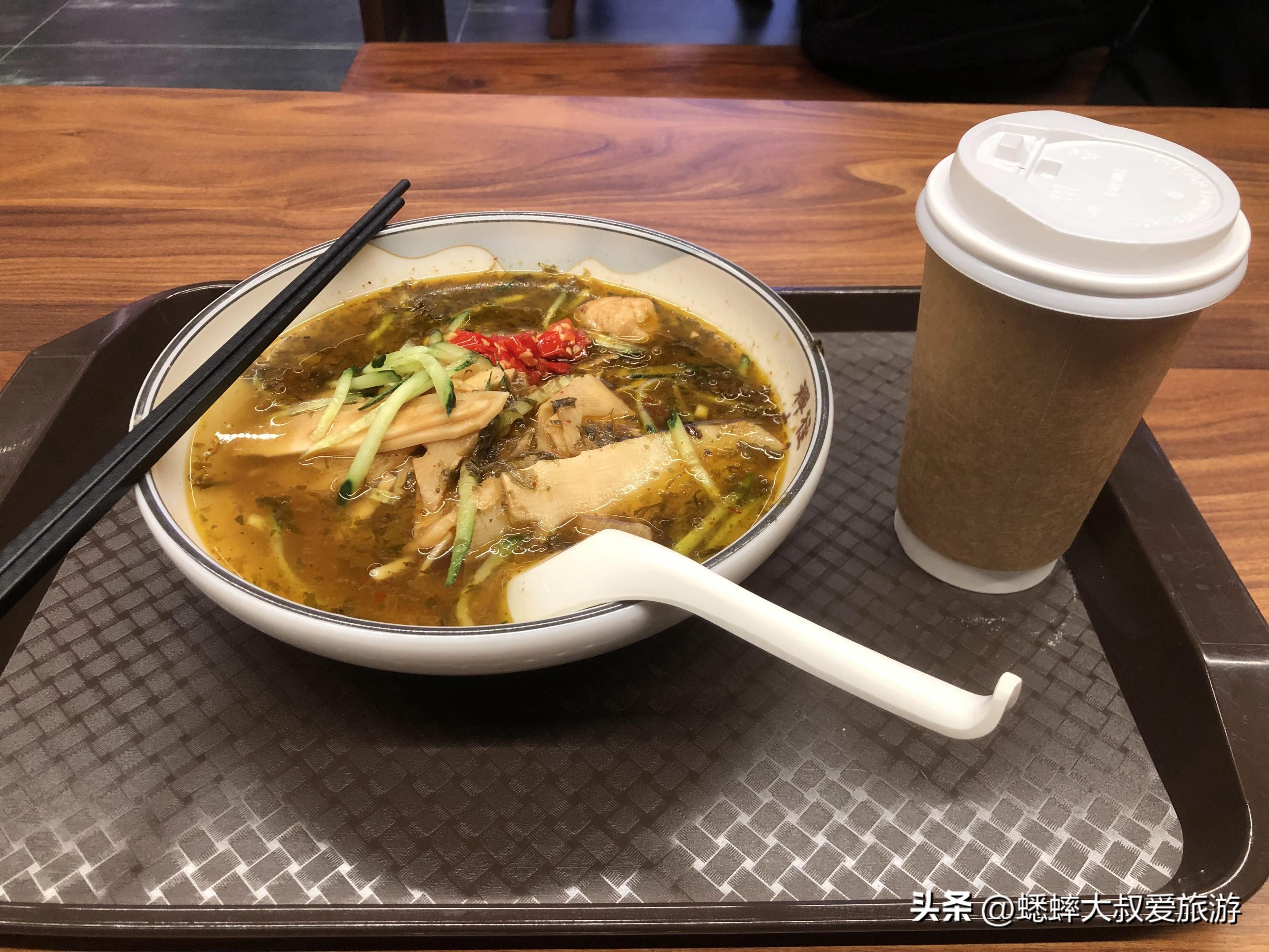 现在吃斋菜,主要为径山寺中的“五观堂”,因为游客众多的缘故,现在只有三样,万福面【22元】、菊花茶【8元】、凉菜【10元】,现场支付后,领了餐盘去接食物就好了。另外,大厅现在还有小料,喜欢辣的可以加辣椒,洗手间就在大屏幕的左侧。