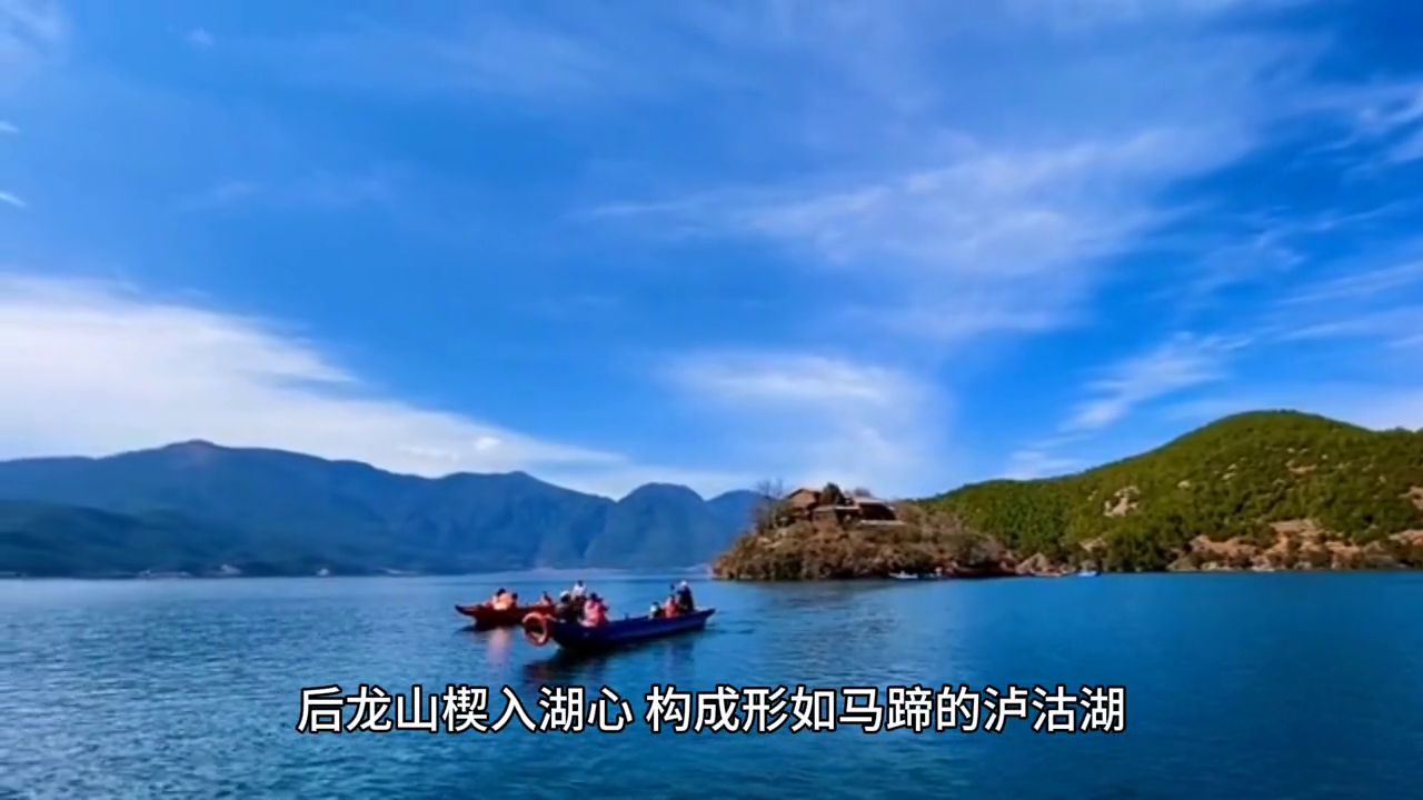 3. 泸沽湖:泸沽湖是中国第三大深水湖泊,被誉为“高原明珠”。湖周群山环抱,格姆女神山高踞湖畔,后龙山楔入湖心,构成形如马蹄的泸沽湖。