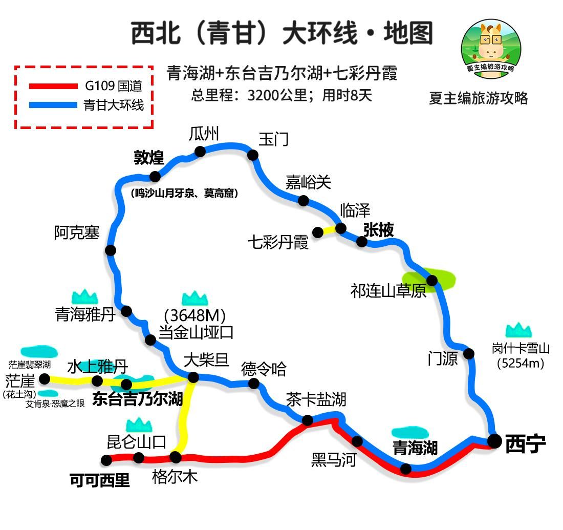 旅游信息:总里程3000公里,自驾需6-10日,人均预算花费3000-4000元。