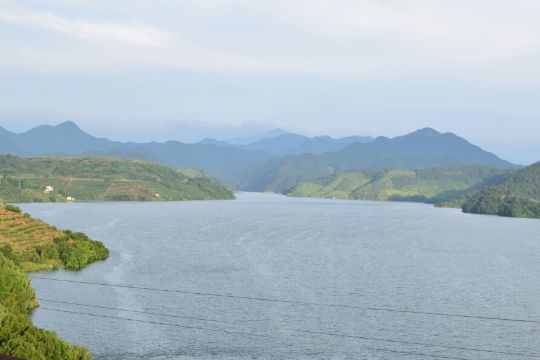 在桥上看风景,视野极其开阔,两边的山一直蔓延着同远处的融在了一起,化成了一团茫茫的水彩,桥下的韩妃江蜿蜒而过,山底的村落和农田在这里尽收眼底。
