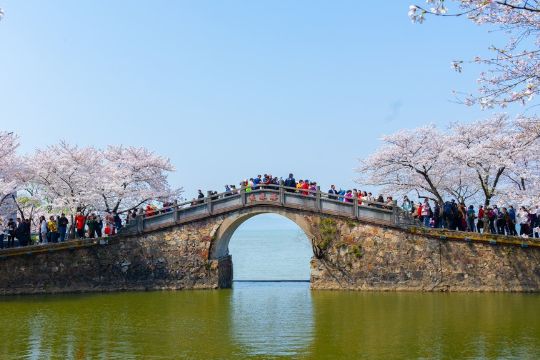 鼋头渚是太湖北部的一处半岛,形似浮鼋翘首而得名。在这里你可以游览庞大的园林群,坐船感受太湖的烟波浩渺,登太湖仙岛一探秘境,也可以在春日来此品赏樱花,体会郭沫若先生所赞“太湖佳绝处、毕竟鼋头渚”的意境。