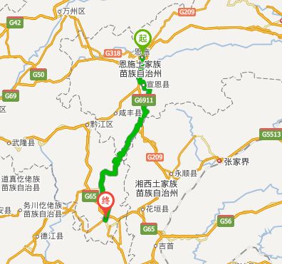 方案二、恩施到重庆铜鼓包,不走高速路线,如下所示: