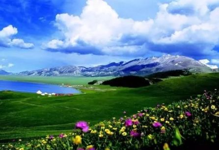 赛里木湖位于新疆西部博尔塔拉,靠近霍城、伊犁等地,距乌鲁木齐约600公里。莉姆湖背靠雪山,周围是广阔的草原,湖水清澈湛蓝。它一直是新疆最著名的景点之一,因为它风景优美。每年六七月,湖边的草原上各种野花竞相开放,是不容错过的壮观景象。