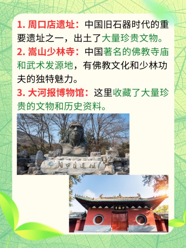 2. 嵩山少林寺:作为中国著名的佛教寺庙和武术发源地,少林寺吸引了无数游客前来领略佛教文化和少林功夫的独特魅力。