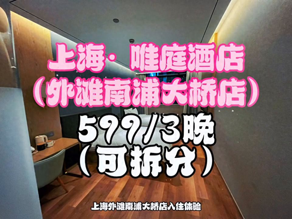 唯庭酒店上海外滩南浦大桥店入住体验,599块钱就可以在上海的外滩旁边住三个晚上,这事你敢信吗?今天的视频就去体验一下平均200块钱一晚上的上海唯庭酒店。说真的就是200块钱就可以在上海外滩旁边住一晚上,我觉得这个对我在脑海里是不太合理的价格(便宜过头了)。不管怎么样先去看一下。