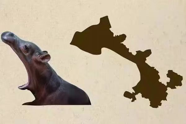 甘肃。这是一只张大嘴的河马,仔细看看还是蛮像的,像一只卡通版的河马,也有人说甘肃省像一根骨头,你觉得呢?