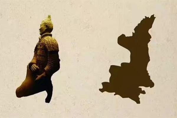 陕西。最贴切莫过于陕西省了,陕西有13朝古都西安,秦始皇兵马俑闻名天下。陕西的形状也像极了一个跪着的兵马俑,将陕西的特色体现的淋漓尽致。