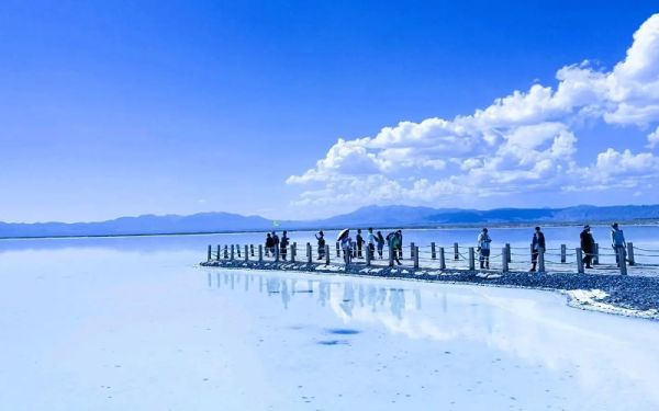 茶卡盐湖,位于青海省海西蒙古族藏族州乌兰县茶卡镇盐湖路9号,“茶卡”是藏语,意即盐池,蒙古语“达布逊淖尔”,也就是青盐的海。湖泊的纯净不掺杂质,天空的纯净不染纤尘,站在湖边望着绵软的云朵,哞叫的牦牛,身边的人。这片如诗如画的蔚蓝色梦境,不禁让人感动,叫人迷失。