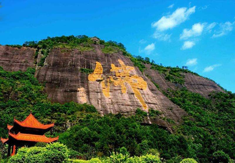 在山脚下便可看到一个刻在山体上的金“佛”大字,高108米,宽88米,成为了这里一道独特的景观。沿着步道登山,沿途奇峰怪石不断,规模宏大的五百罗汉堂,众多宗教遗迹等。