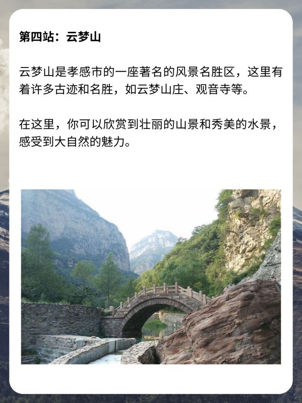 孝感:一个充满孝心和温情的城市,拥有许多美丽的旅游景点,景点丰富多彩,每个景点都有着独特的魅力。