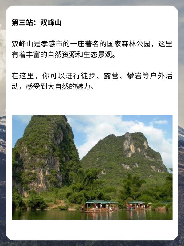 双峰山是孝感市的一座著名的国家森林公园,这里有着丰富的自然资源和生态景观。