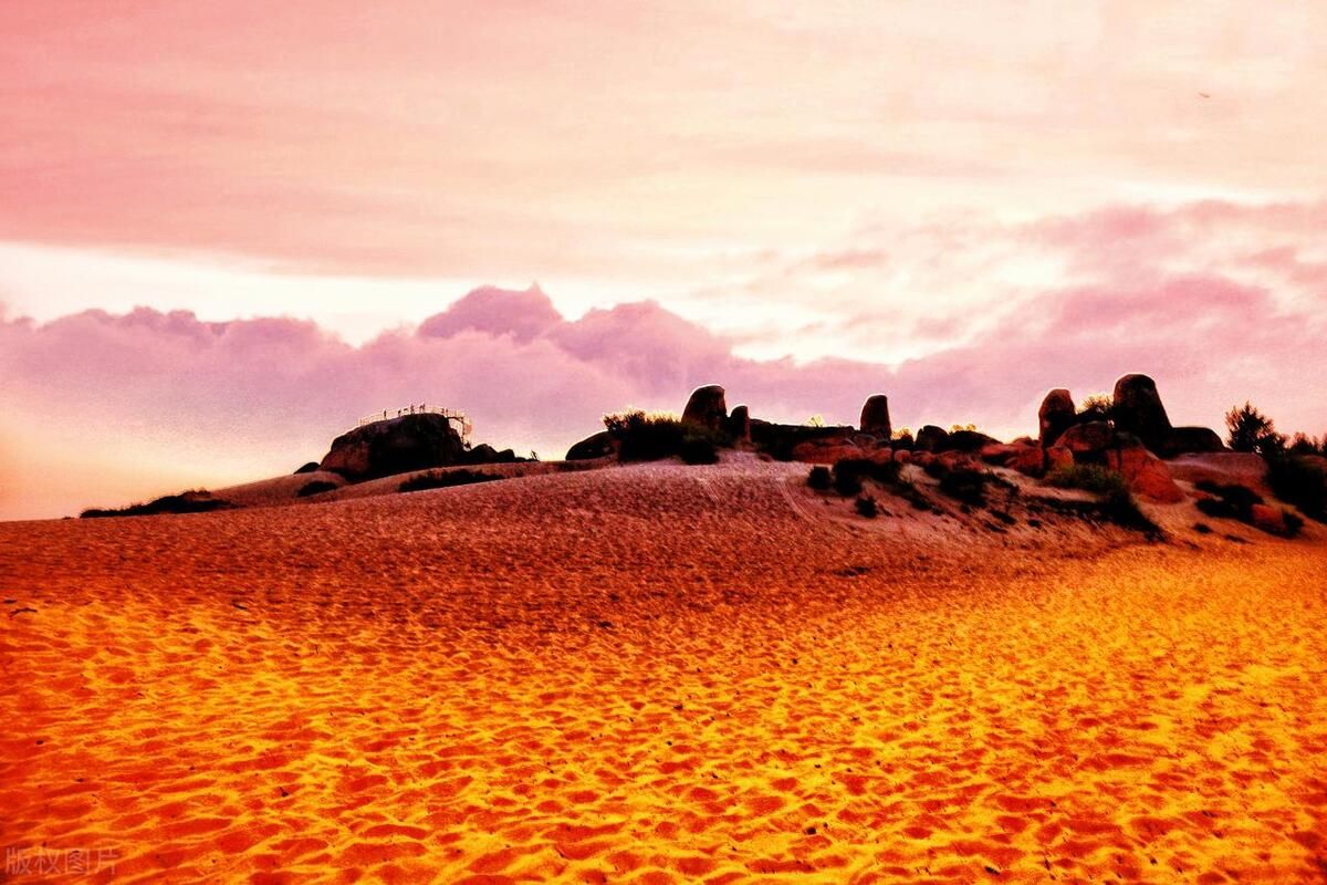 这里的沙漠有“八百里瀚海“之称,夏天的沙漠里既有奇形怪石,又见”蓝天丽日,草绿林翠“。在茫茫沙漠里,游客不仅可以享受到滑沙、沙地摩托、沙漠越野等活动带来的刺激,还可以欣赏到沙漠湖泊的美景。