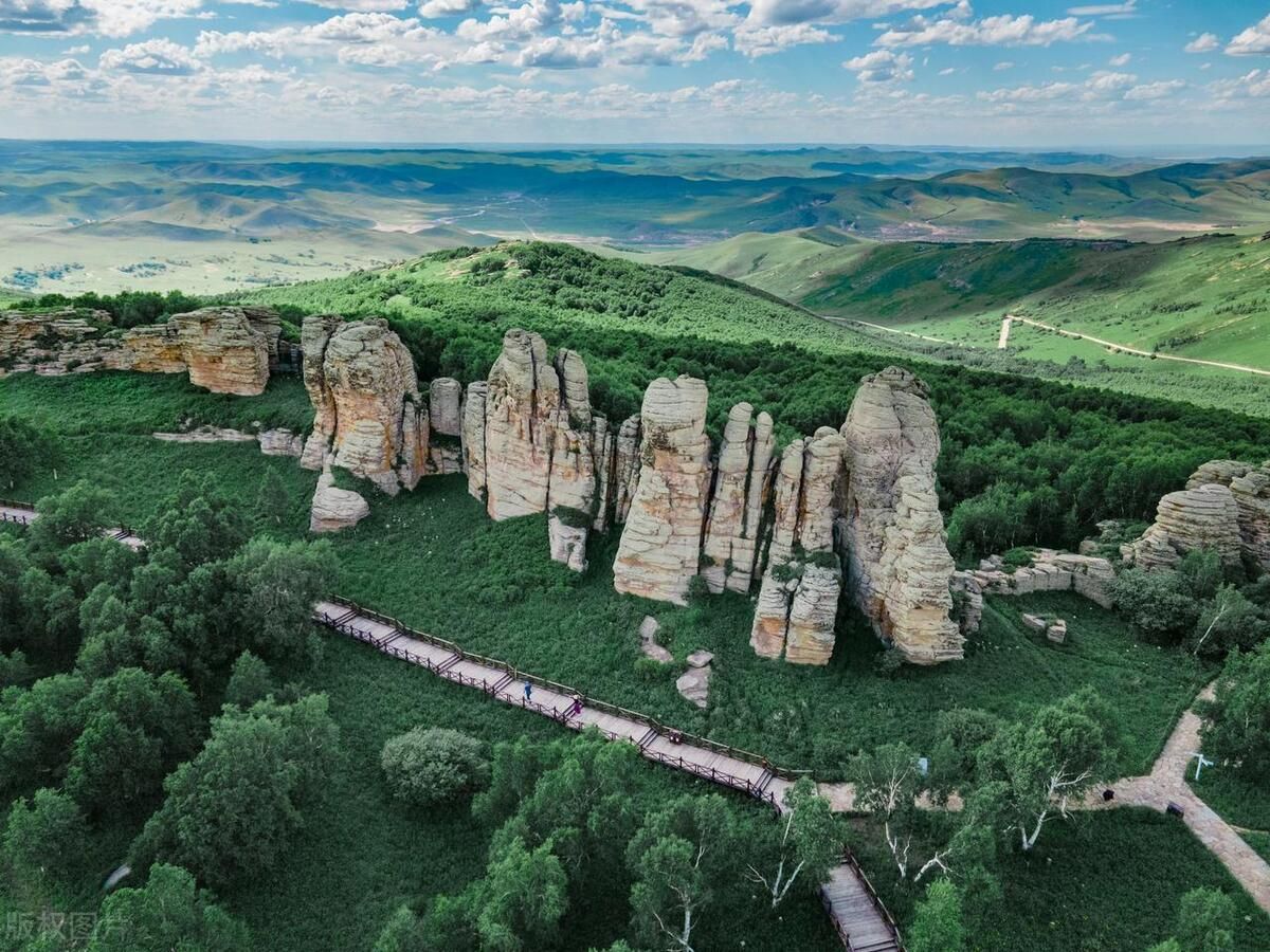 3、阿斯哈图石林。阿斯哈图石林位于赤峰市克什克腾旗,是一处以奇特的石林地貌为主题的旅游景区。这里的蓝天、白云、森林、草原、地质遗迹相辉映,呈现出一种超自然的纯净之美。